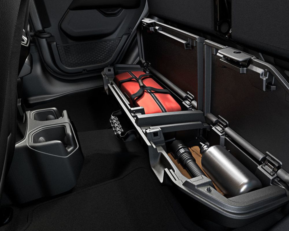 Step inside the Gladiator's cabin to find a user-friendly dashboard, comfortable seating options, and ample cargo space. Features like the waterproof push-button start and optional heated steering wheel elevate the driving experience, while the removable body and roof panels provide an open-air driving sensation.