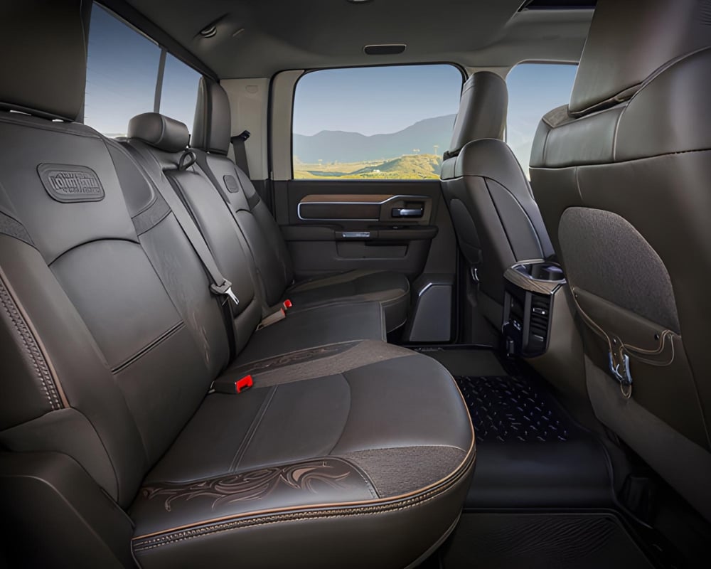 Inside the truck continues to deliver a surprisingly upscale cabin. Depending on the trim, you'll find everything from durable cloth and vinyl to premium leather upholstery and real wood accents. Warmed and ventilated seats, dual-zone climate control, and ample rear legroom make long drives more enjoyable—even with a full crew on board.